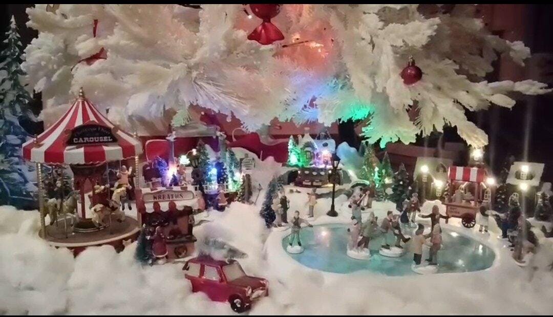 Village Skating Pond božićno klizalište minijaturna dekoracija sa zvukom
